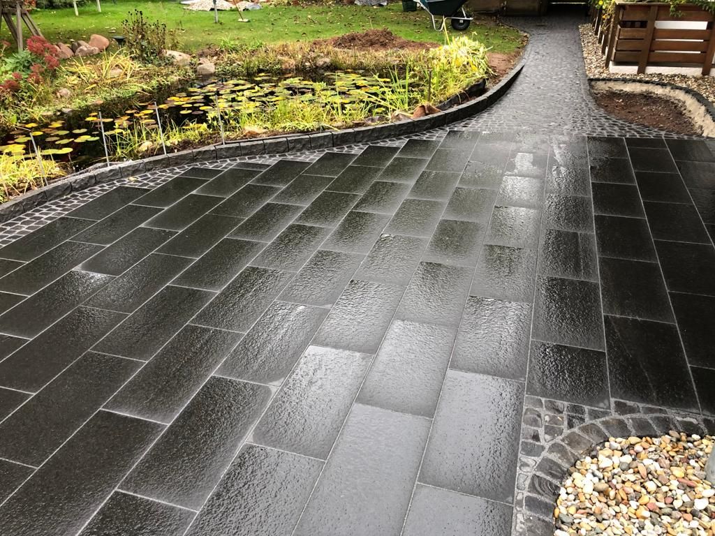 - Pflastern von Parkflächen, Gehwegen, Gartenwegen, Hofeinfahrten, Carports, Terrassen und Hofbefestigungen
